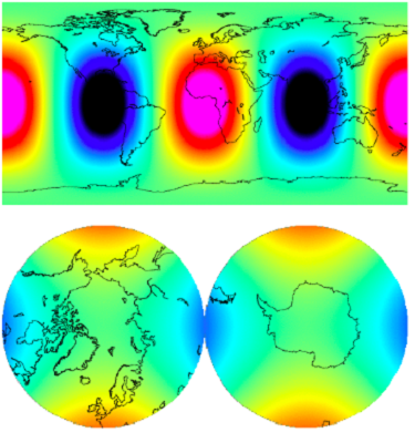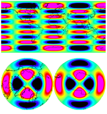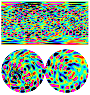 These are the looks of some standard basis vectors. In our first case, these are the spherical harmonic functions up to degree and order 50.