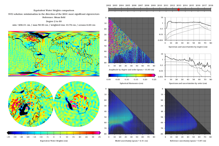 Of course, this technique doesn’t guarantee that we are not also removing some part of the signal with this method. But any post-inversion filtering does it for certain. Therefore, it is at least worth studying and comparing the results provided by the two techniques. Since the EGSIEM combined normal equations are now available, we will be able to proceed to this comparison in the future months, and, as usual, you’ll be the first to know the results.