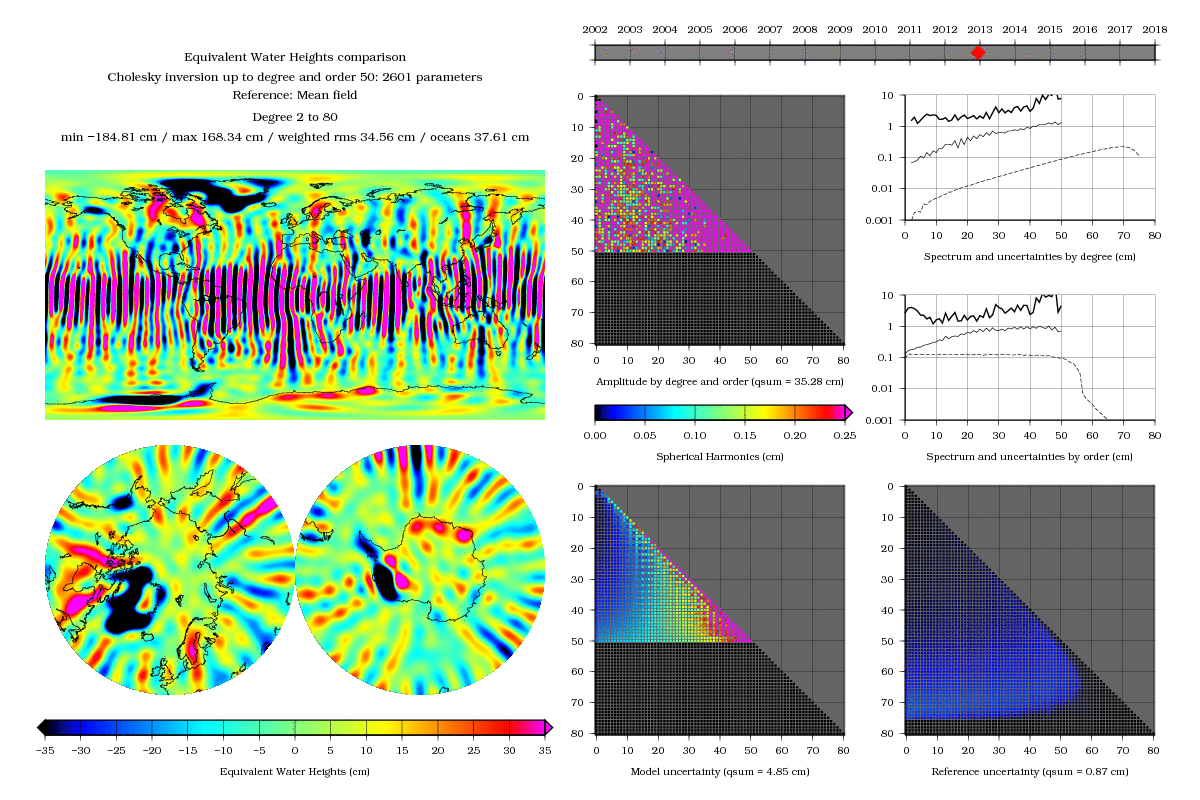 In both cases, we used the same number of parameters : 2601. For a same number of parameters, the difference is quite eloquent. Not only did we get rid of the annoying stripes, but also did we obtain a very nice spatial resolution. Of course, everything is not perfect: there are specific problems that appear, namely at the poles. But with such a remarkable and promising difference, the process definitely deserves some more research and exploration…